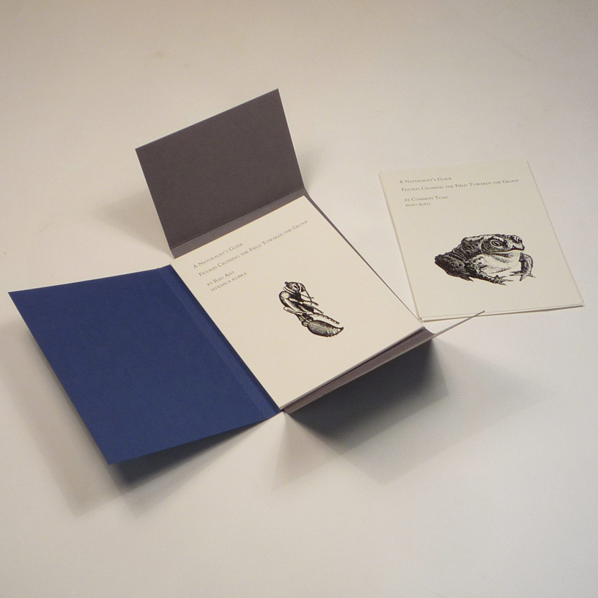 A small format, collector card series housed in a custom folder, featuring selected fauna and flora from the novella Figures Crossing the Field Towards the Group by Rebecca Gransden. Includes an extract from the book, plus a new prose piece written especially for this project. Signed and numbered by the author.
